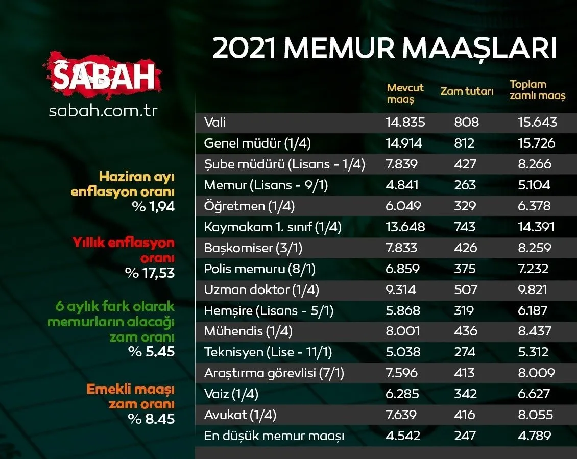 MEMUR MAAŞLARI 2021 Temmuz zammı sonrası güncel hesaplamalar yapıldı gözler gelek yılbaşı için zam parlıklarına çevrildi. Memur emekli maaşları Temmuz ayında yüzde 545 zam yapılacak. Milyonlarca memur ve emeklinin maaşına yılın ikinci yarısında yapılacak zam oranı da böylelikle netlik kazandı.